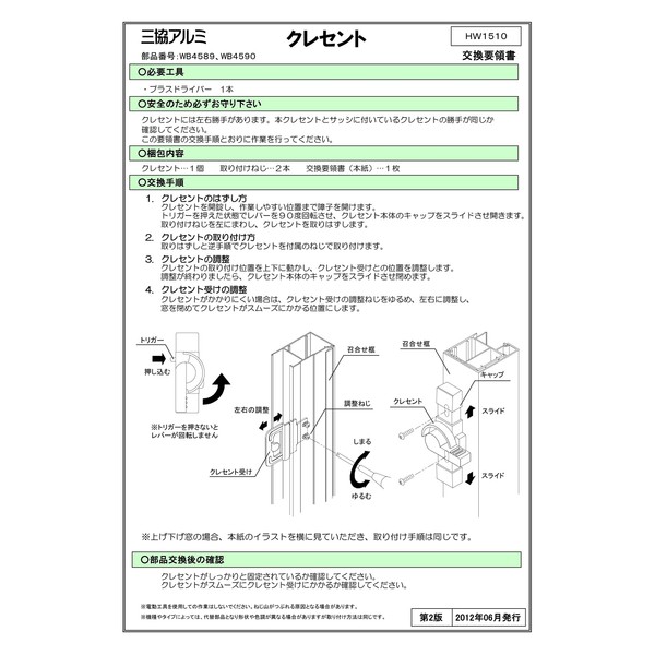 • Contents: Crescent x 1, screw x 2, replacement manual (English language not guaranteed)