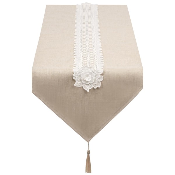 SANLEHAUSE Table Runner Beige 40 x 250 cm Linen ,Embroidered Tassel Tablerunner , Plain, Elegant, Easy-care Table runner for Dining Table, Coffee Table, Restaurant, Decoration