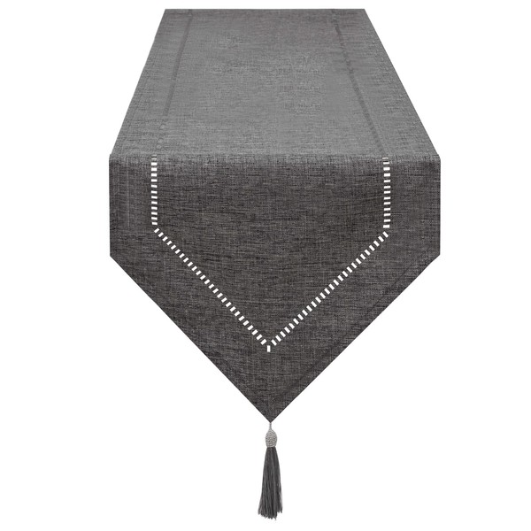 SANLEHAUSE Table Runner Linen Gray 32 x 180 cm, Tablerunner Linen Look, Table Runner, Plain, Modern, Easy-care Table runner for Dining Table, Coffee Table, Restaurant, Decoration