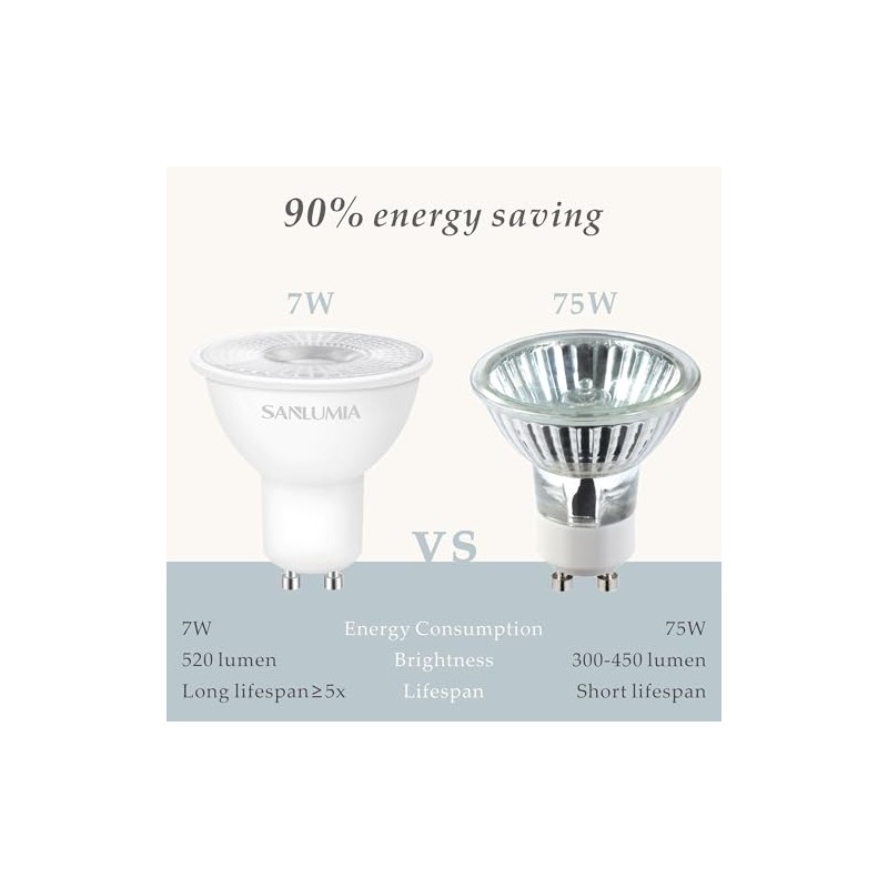 sanlumia sanlumia 10 X 7W Gu10 LED Dimmable Bulbs 520 Lumen Recessed Spotlight Warm White Bulbs 75W Halogen Equivalent 3000K