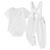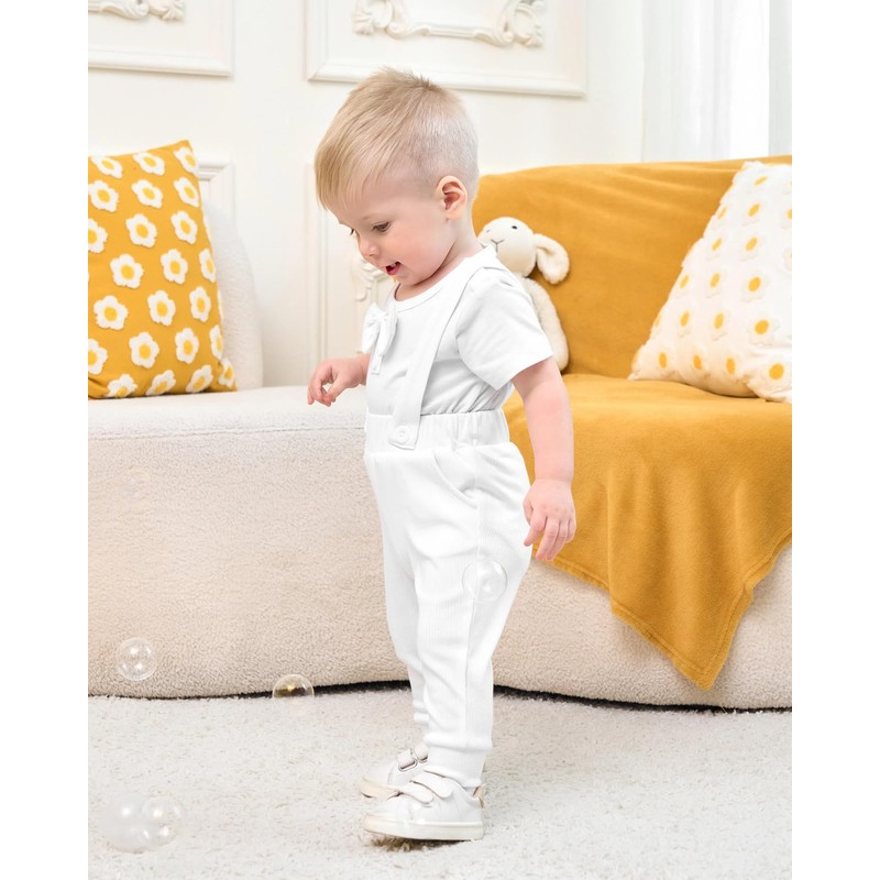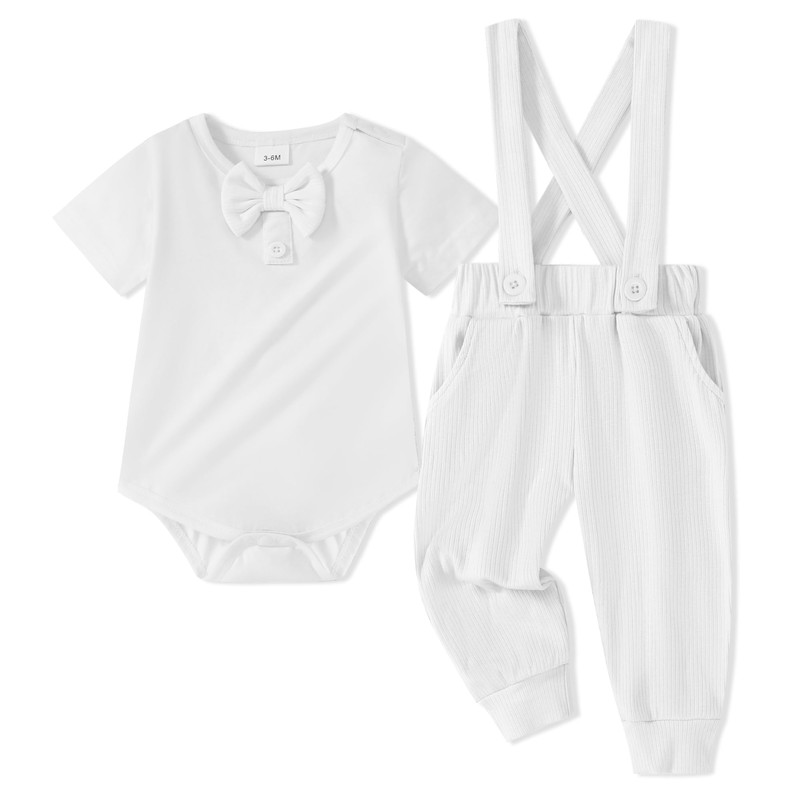 - Design: The baby boy outfits romper top has buttons on the shoulders and crotch for easy dressing and diaper changes. Soft pants with elastic waistband and adjustable suspenders bring convenience for movement
