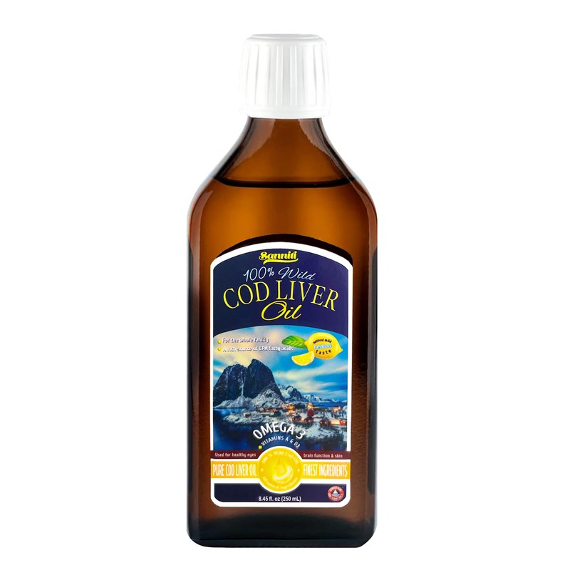 Sanniti 100% Natural Cod Liver Oil, 1081 mg Total Omega-3 Fatty Acids, Wild Caught Nordic, 250 mL (8.4 oz) (Lemon)