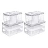 - Note: NOT for microware oven and dishwasher safe! Working celsius temperature -30℃~60℃,suitable for refrigerator and freezer. Set of 4, 2 Large and 2 medium. Large size:10.8"Lx6.8"Wx5.7"H Medium size 9.2"Lx5.8"Wx4.8"H.Two sizes of containers are suitable for diferent kinds of storage in houselife.