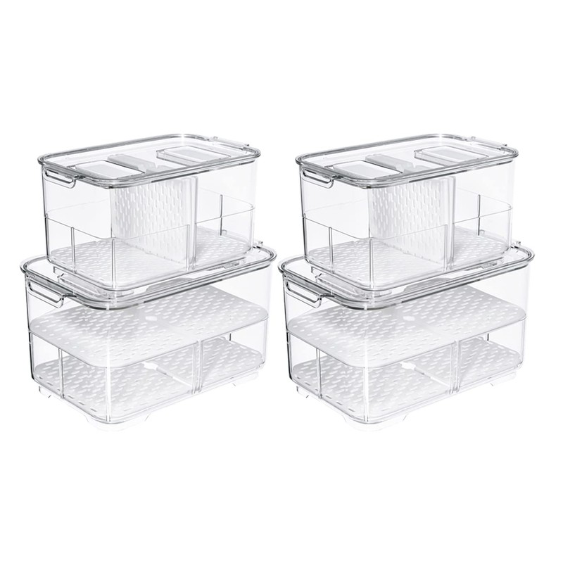 SANNO Fridge Produce Saver Storage Vegetable Fruit Containers Food Produce Saver Container Stackable Refrigerator Organizer Bins Fresh Keeper Drawers Organizer, Set of 4