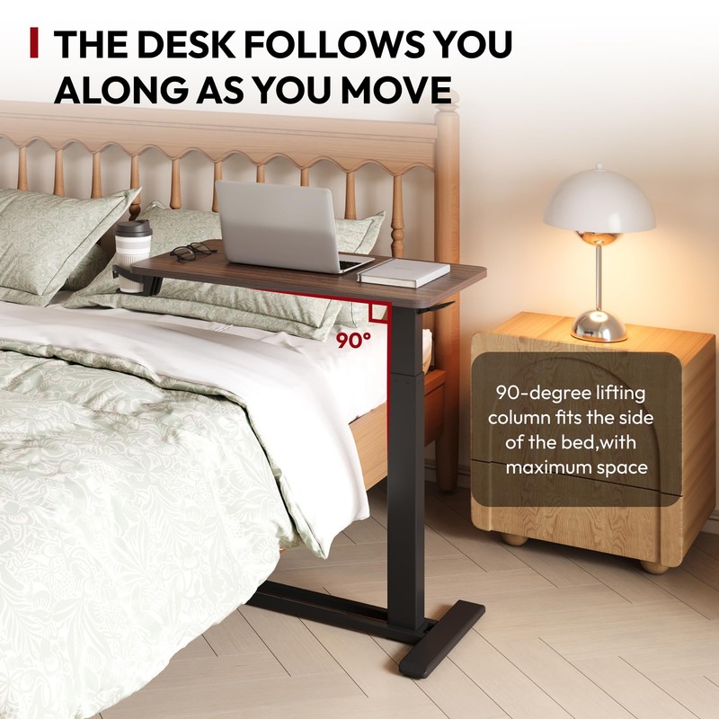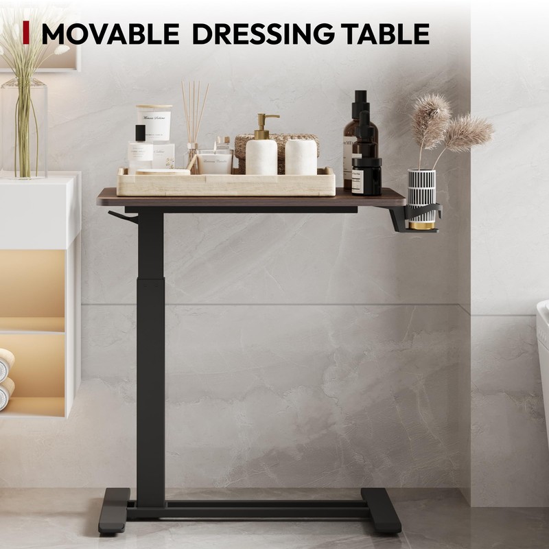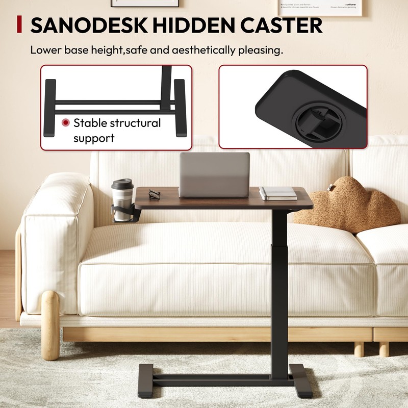 SANODESK Mobile Standing Desk with Hidden Wheels,Pneumatic Laptop Desk Rolling Computer Cart Movable Height Adjustable Small Sit Stand Desk for Home Office(27.6" W x 15.7" D, Maple)