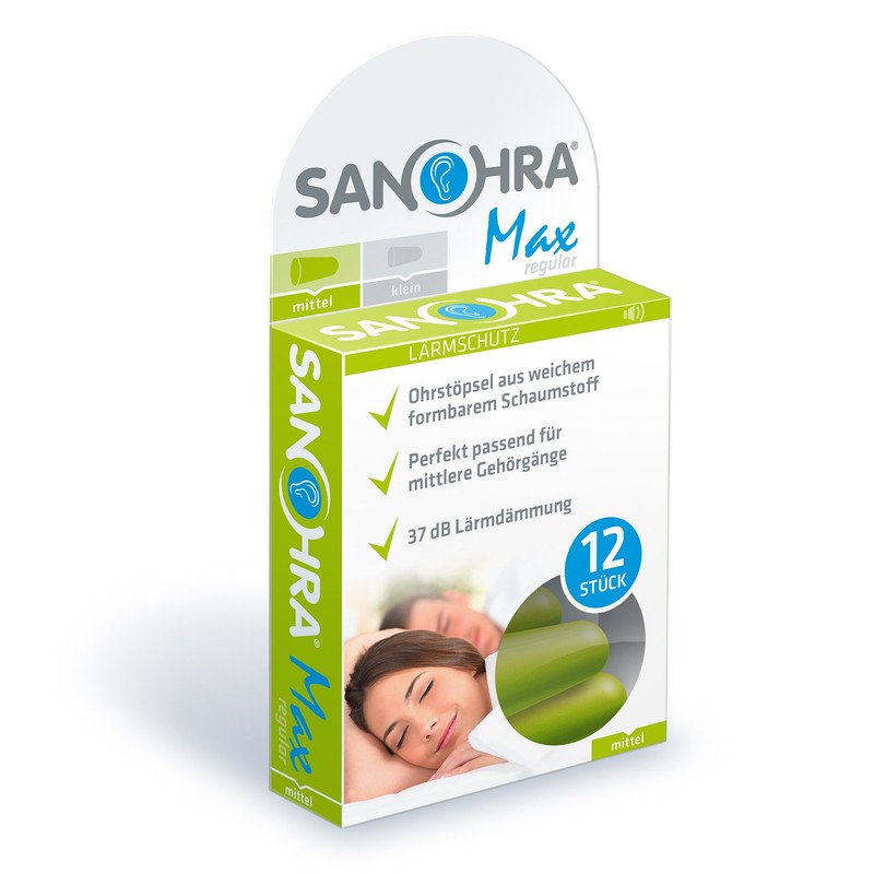- SANOHRA Max soft earplugs with a maximum insulation of 37 dB