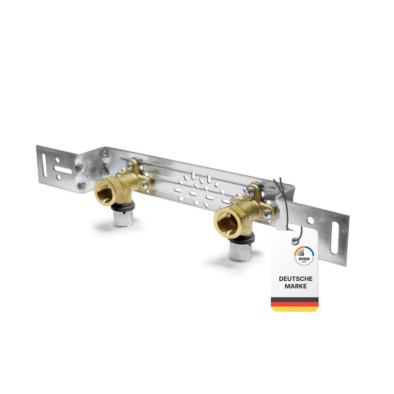 SANPRO Pressfitting wall bracket / wall plate with TH contour and angled mounting plate pre-assembled for our Sanpro multi-layer composite pipe.