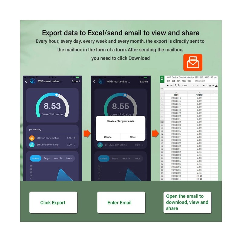• CONNECTION AND DATA TRANSFER: Download the for Tuya Smart APP and enter your account. Realize real time monitoring on mobile phone. Real time data detection Click to view details, view date(day), week(week), month(month)