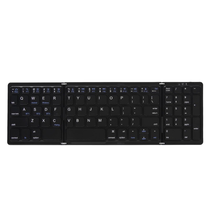 - DISEÑO DE PLEGADO TRIPLE: El teclado Bluetooth plegable presenta un diseño de pliegue triple que lo hace más pequeño y más cómodo de llevar.