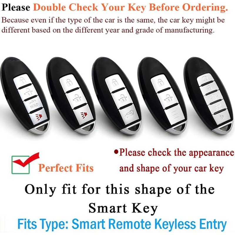 【Model Reference】Fit for Smart Key Fob 3/4/5 Buttons (keyless). Compatible with Compatible with Nissan Altima Sentra Rogue Armada Murano Pathfinder Titan Maxima Sylphy Lannia Livina NV200 Tiida Teana Qashqai Sunny, for Infiniti JX35 Q50 Q60 QX56 QX60 QX80, etc. The shape and size of the car key may vary differ due to the year, region, and class. (Only fit for the car key in our second product detail picture, please be sure to compare with it before buying)