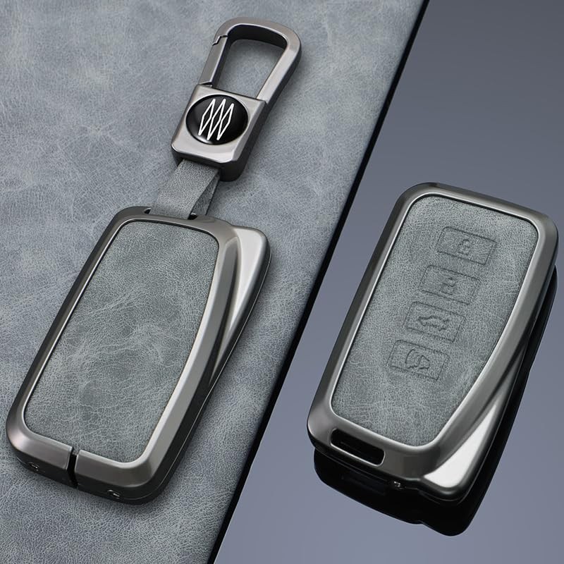 SANRILY Gray 2024 New Metal Leather Key Fob Cover Fit for Lexus IS200t RX ES GS LS NX RS GX LX RC LC 300 300h 350 250 450h 460 600h Keyless Key Holder with Keychain A