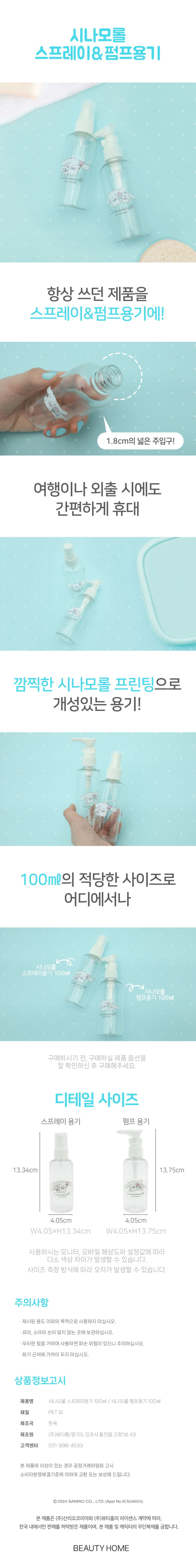 Sanrio Cinnamoroll Pump Bottle 100ml 1P Pump Container 2ea