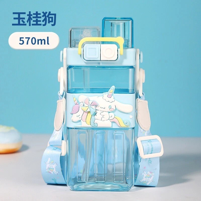 Sanrio Cinnamoroll Two Straws Drinking Water Bottle W/Adjustable Strap 570ml NEW
