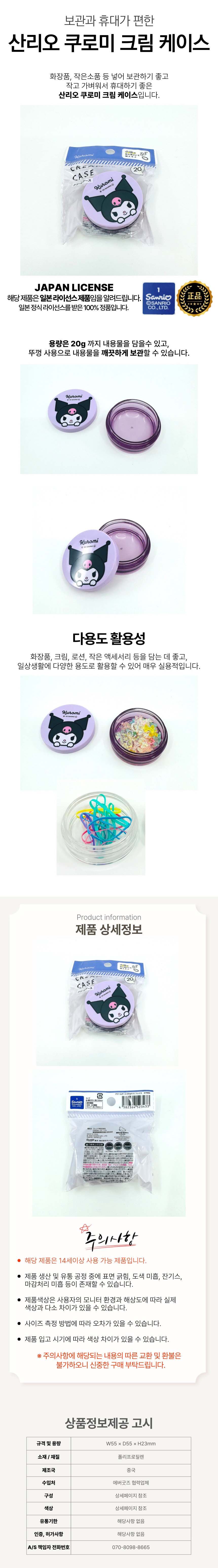 Sanrio Kuromi Portable Cream Empty Container Case 3ea