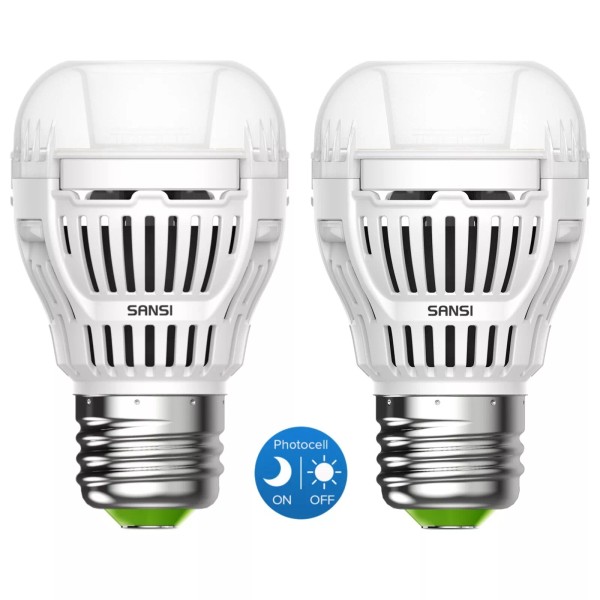 Sansi 2Pack SANSI Dusk to Dawn LED Light Bulbs A15 8W (60W Equiva) 800LM E26 5000K ETL