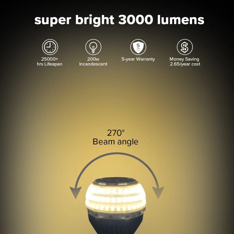 Compared with other LED bulbs, SANSI's high efficiency bulbs can provide 4000 lumens using only 22 watts of power, equivalent to 150W incandescent bulbs. Based on 3 hours usage per day, save up to 95% electricity, estimated annual cost $3.94.