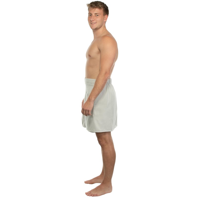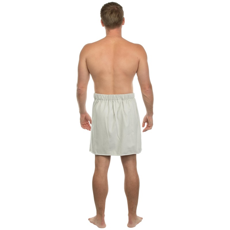 Sansibar Men's Sauna Kilt Sauna Sarong S-XXL with Velcro Fastening, Elastic Band and Pocket with Embroidered Sabre Logo, 100% Cotton, Silver/Light Grey, silver