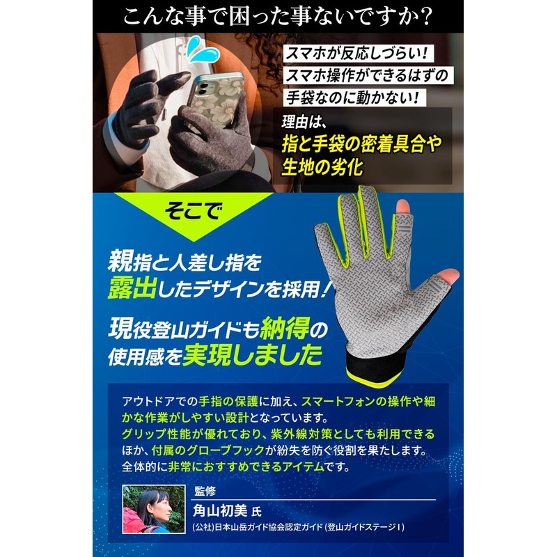 - Certification Guide by the Japan Mountain Guide Association (Climbing Guide Stage) (Climbing Guide Stage) Supervised by Hatumi Kadoyama, "Climbing Gloves (Trekking Gloves)" to ensure your smartphone operation. Suitable for both men and women