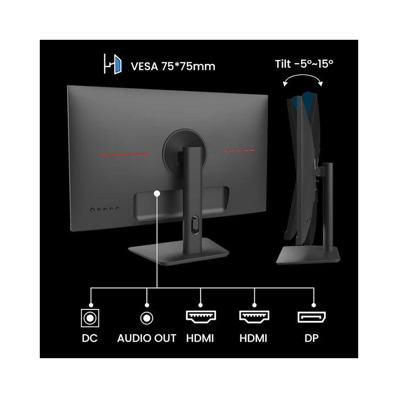 Its ergonomic design includes an easily mountable stable stand with -5° to 22° tilt adjustment, a wide 178° viewing angle, and compatibility with 75×75mm VESA mounts.