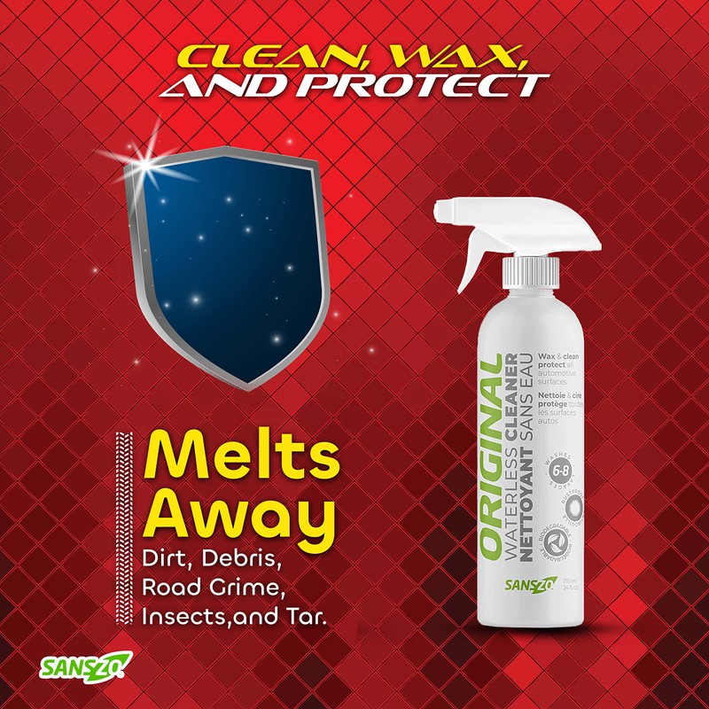 SansZo Total Detail Waterless Car Wash Wax and Polish Spray - Cleans, Shines and Protects with one Quick Application - Ultra Slick Lubricating Quick Detailer, Pro-Style Detailing Made Easy - 24 OZ
