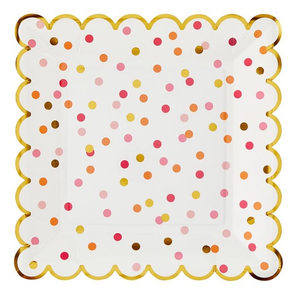 Santa Barbara Design Studio Disposable Plate 8-Count Pack Scallop Edged Square Paper Plates, 9-Inch, Confetti