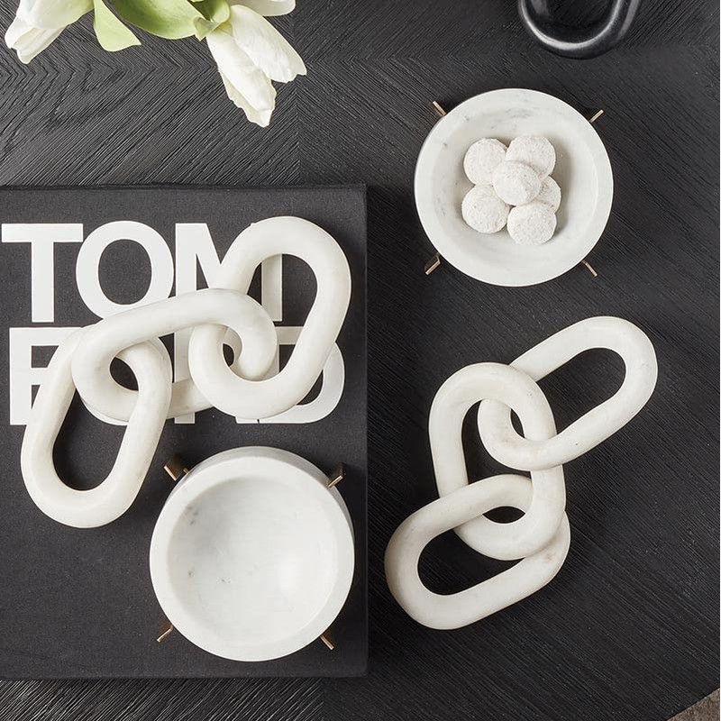 Santa Barbara Design Studio Serving Bowl with Stand Pure Design Marble Serveware, 7" Diameter, White/Brass