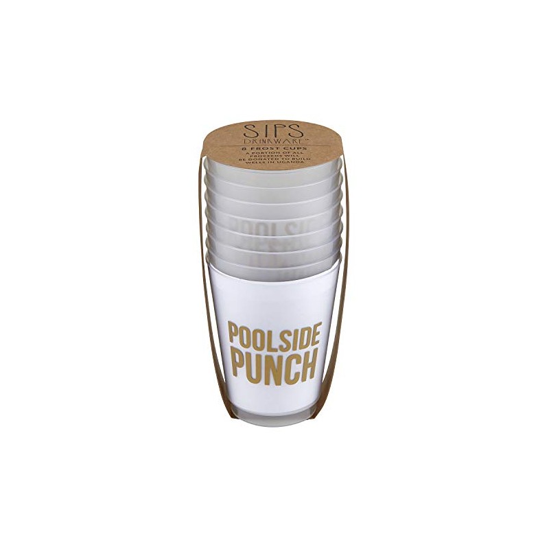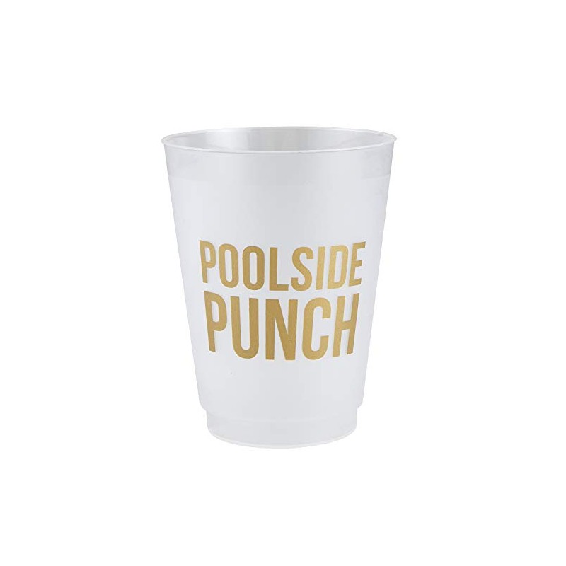 - GOLD PRINT: White frosted cup; reads "Poolside Punch"