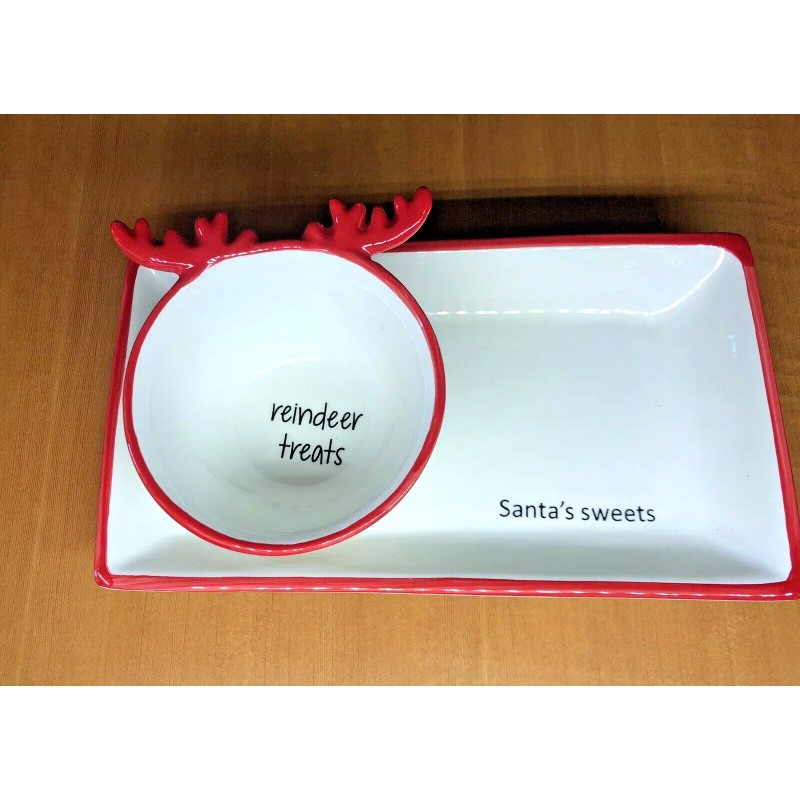 Santa Claus Ceramic Cookie Plate Tray and Bowl Christmas Eve Candy Cookie Set