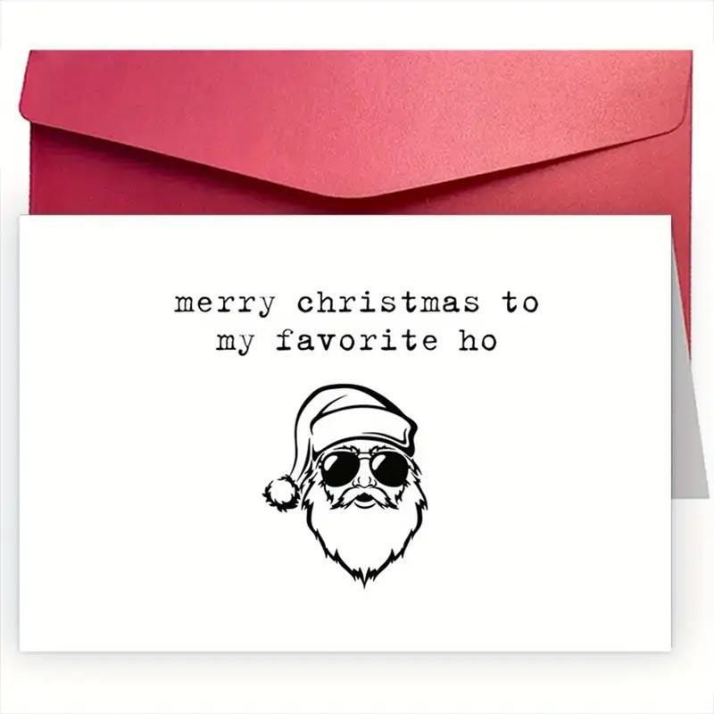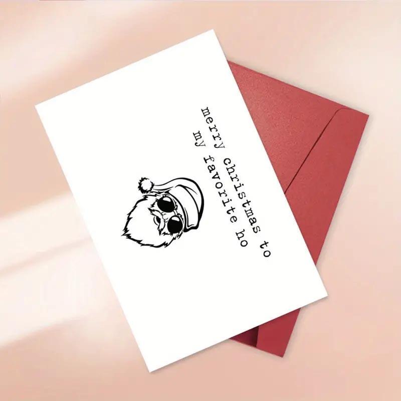 Santa Claus Pattern Greeting Card with Envelope, 1 Count Funny Christmas Card, Unique Holiday Greeting Card for Girlfriend, Best Friend, Any Special Woman