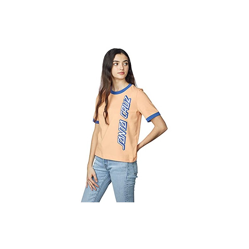 Santa Cruz Women's Obscure Strip Ringer Shirts,Medium,Peach