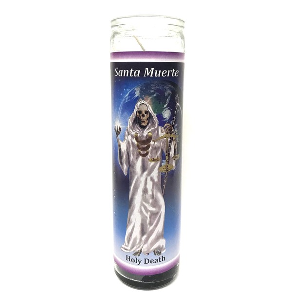 Santa Muerte Unscented Glass Prayer Candles, 8", Devotional Candles