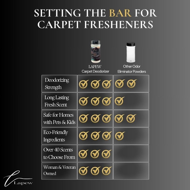 Discover the invigorating scents of Lapew's Upholstery Deodorizers. Infused with simple, natural ingredients, this 36 oz deodorizer is free from harsh chemicals, providing clean freshness for your home. Ideal for various surfaces such as upholstered furniture, carpets, pet areas, and more, it ensures long-lasting revitalization. To use, lightly sprinkle over the desired area, let it work for 20 minutes, and vacuum away for a renewed, clean aura. Made in the USA, it's safe for people, pets, and the planet.