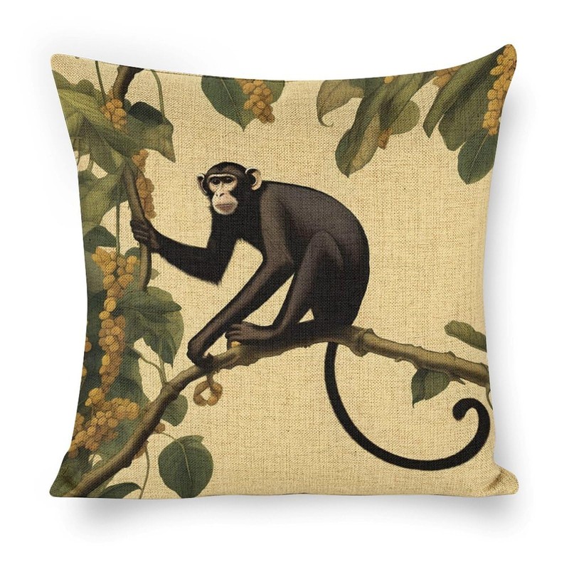 santanu Black Monkey with Long Tail Animal Pillow Covers Invisible Zipper Pillowcase Linen Pillow Cases 18x18 Inches Indoor Necessities Home Decor, for Car Sofa Bedroom Cushion Cover