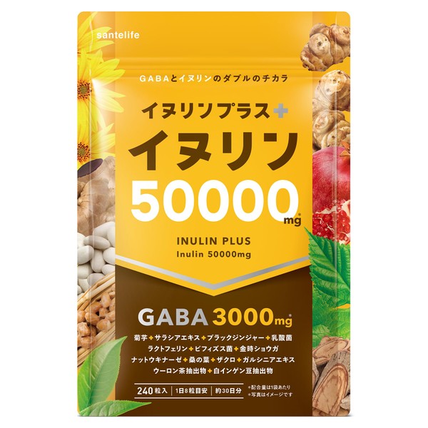santelife イヌリンプラス イヌリン 高配合50000mg GABA 3000mg 食物繊維 水溶性 菊芋 サラシア 乳酸菌 ビフィズス菌 食物繊維 サプリ240粒 約30日分