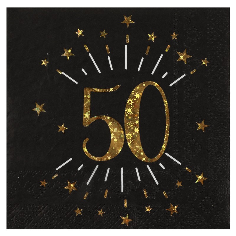 Santex Gold Sparkling BLACK age 50 Napkins
