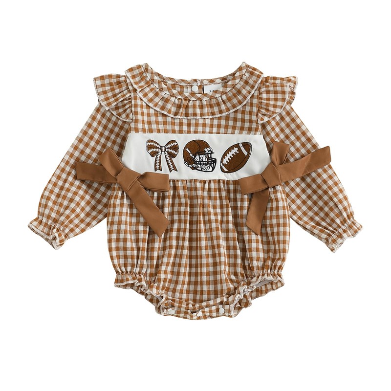 Newborn Infant Baby Girl Outfit Fall Football Long Sleeve Romper Bodysuit Ruffled Plaid Bubble Clothes