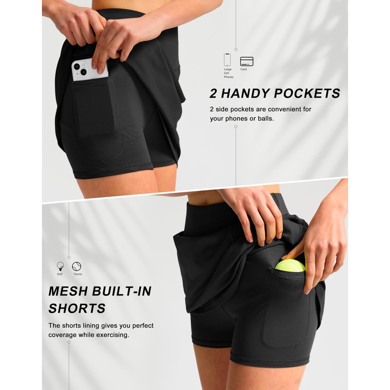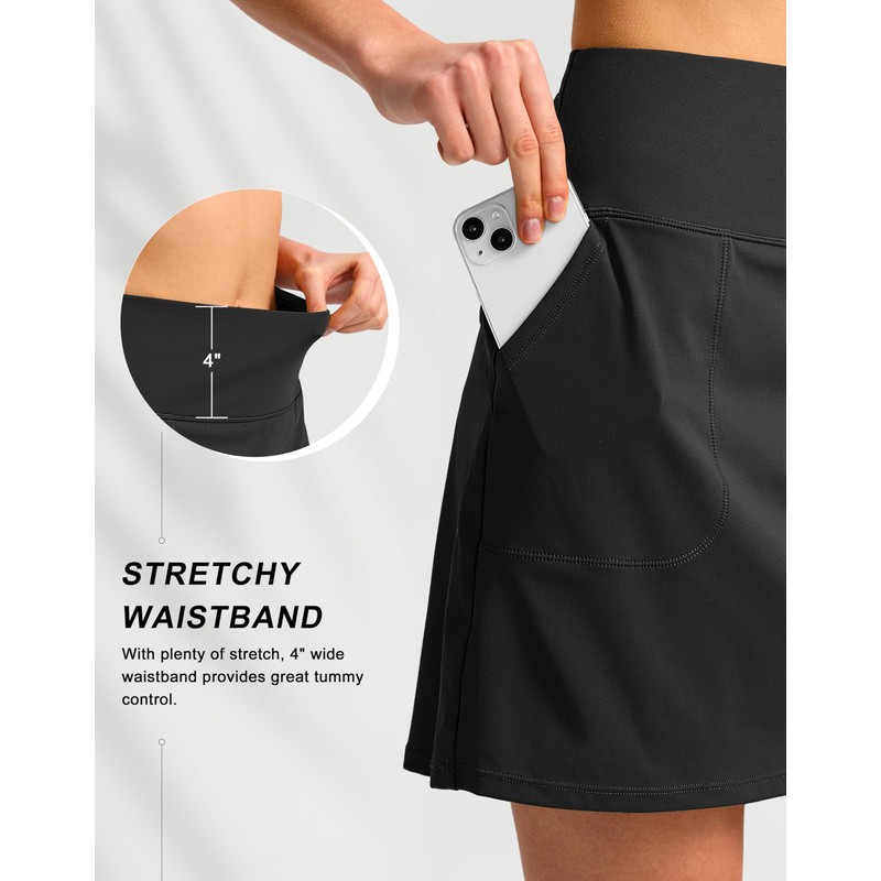 - High Waist & Tummy Control: The flattering high waist is smoothing and slims your silhouette a bit, allowing for great tummy control. And the length of 16inch golf skort is modest, not too long or too short.