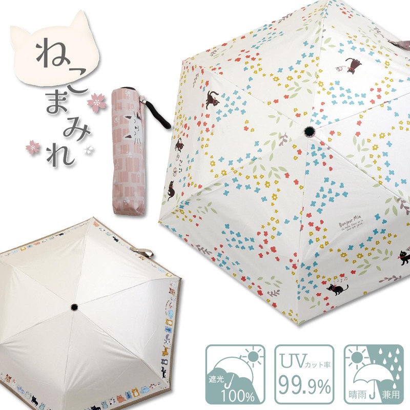 Santos JKO-552-05 Folding Umbrella, Cat Covered with Rain or Shine, Cat Sanpo, Diameter Approx. 37.4 inches (95 cm)