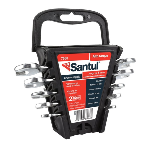 - LLAVES ESPAÑOLAS. El juego de llaves modelo 7668 de Santul contiene llaves de 6 x 7, 8 x 9, 10 x 11, 12 x 13, 15 x 15 mm. Cumplen con tratamiento térmico y tienen una dureza de 45 - 53 HRc.