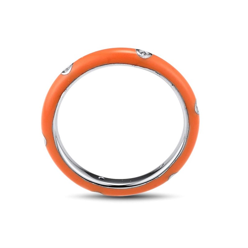 Santuzza 925 Sterling Silver Enamel Stackable Ring Cubic Zirconia Eternity Stacking Ring for Women (Orange,8)