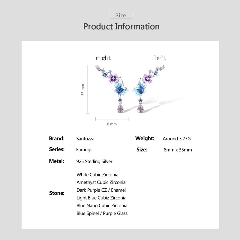 Santuzza 925 Sterling Silver Flower Butterfly Earrings Purple Glass Cubic Zirconia Enamel Stud Earrings for Women