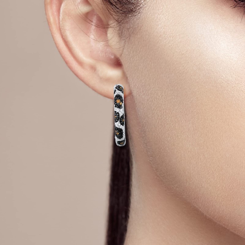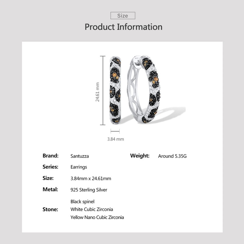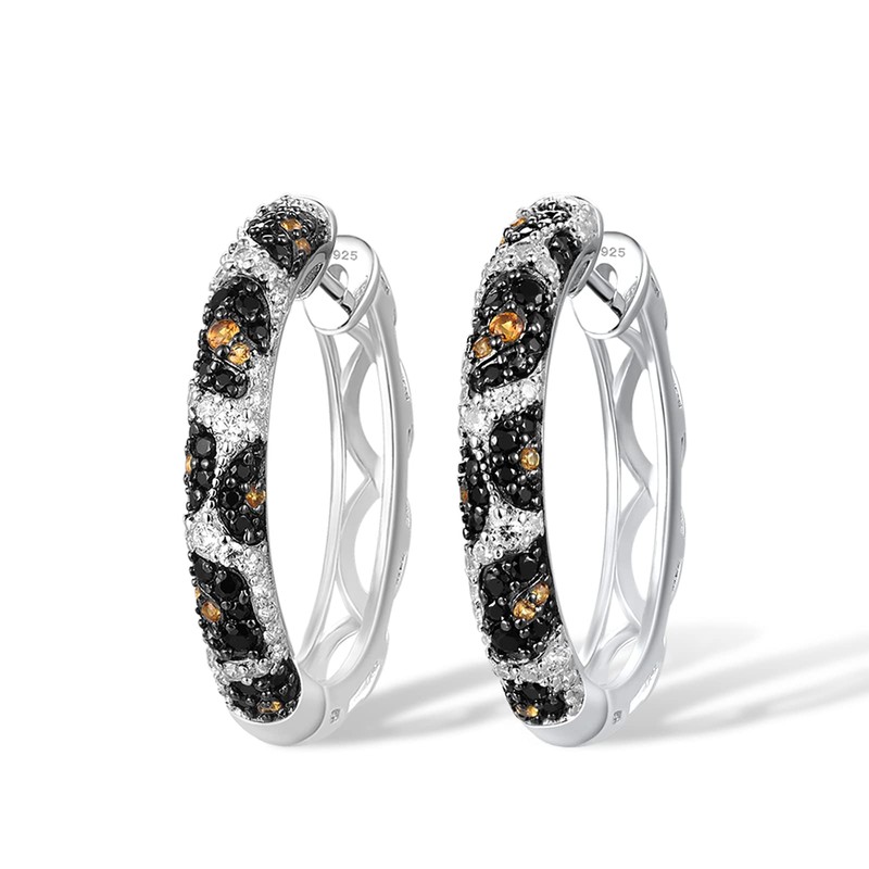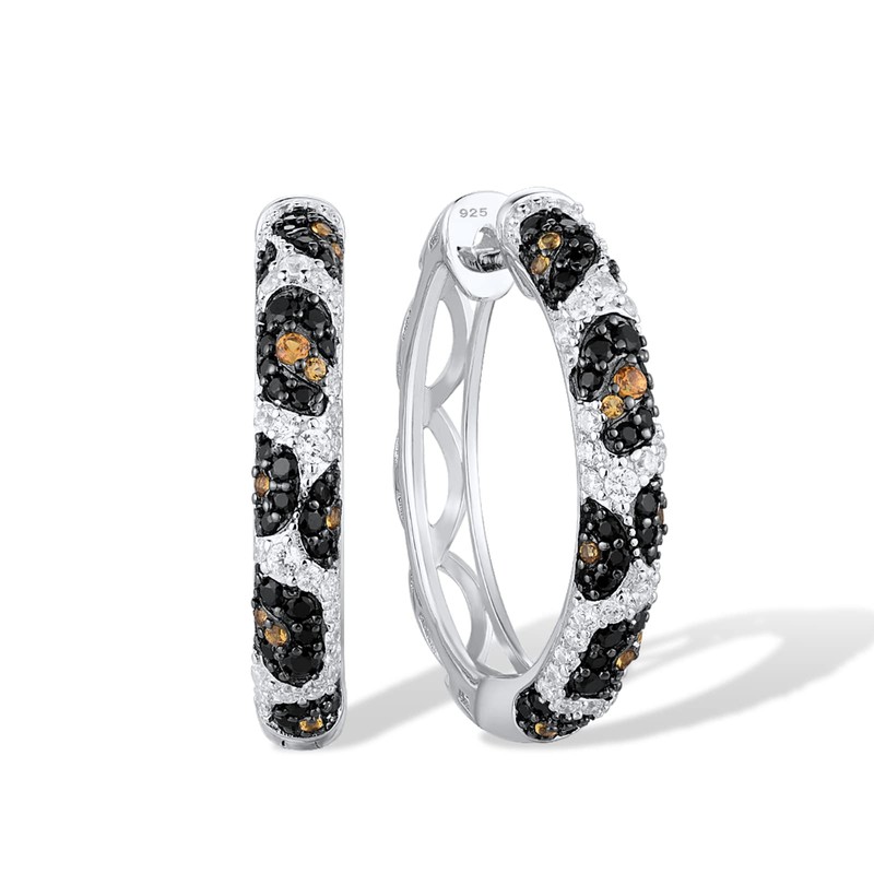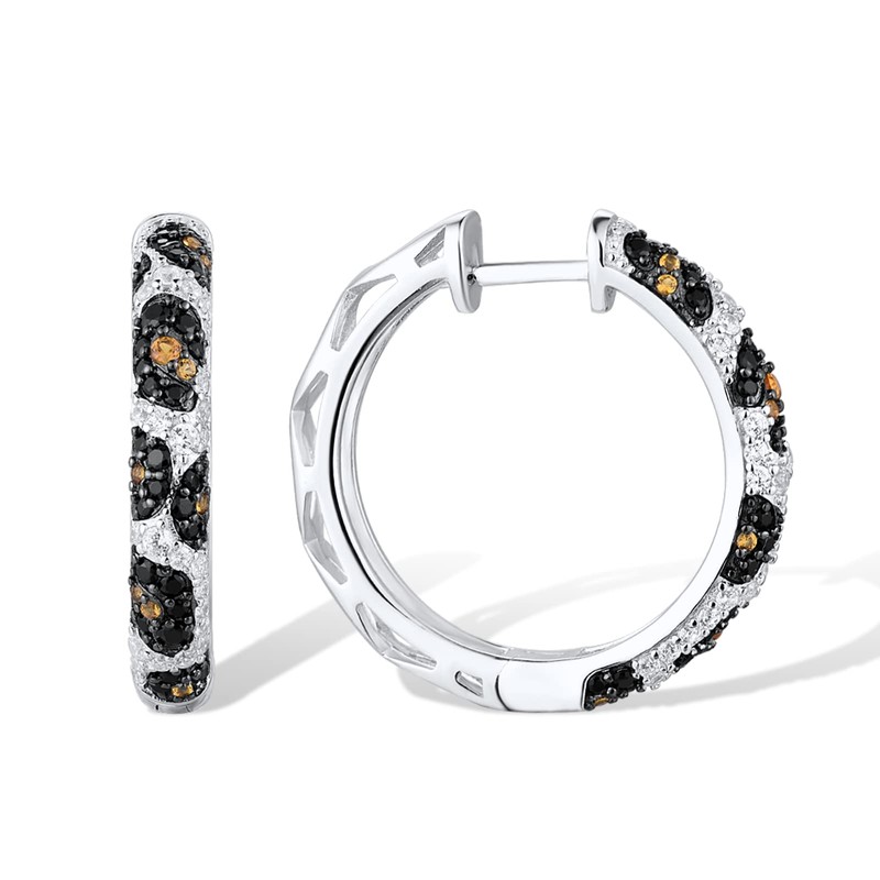 Santuzza Hoop Earrings 925 Sterling Silver Python Pattern Black Gemstone White Cubic Zirconia Round Earrings