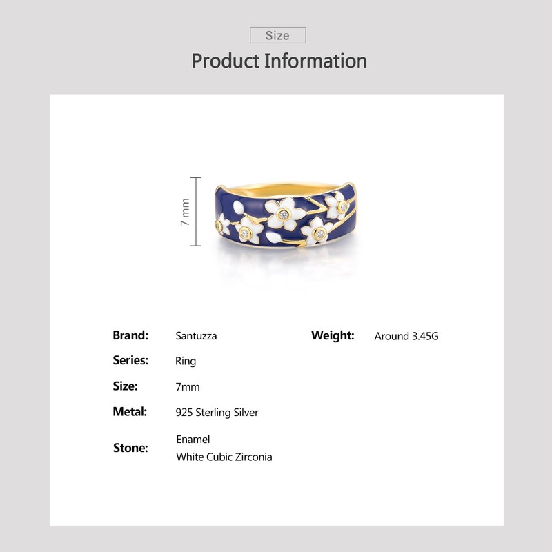 Santuzza Orchid Ring 925 Sterling Silver Enamel White Flower Pattern Ring for Women (8)