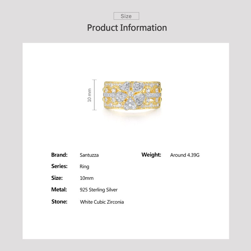 Santuzza Sterling Silver Gemstone Flower Ring Gold Plated Cubic Zirconia Daisy Pattern Statement Ring for Women (7)