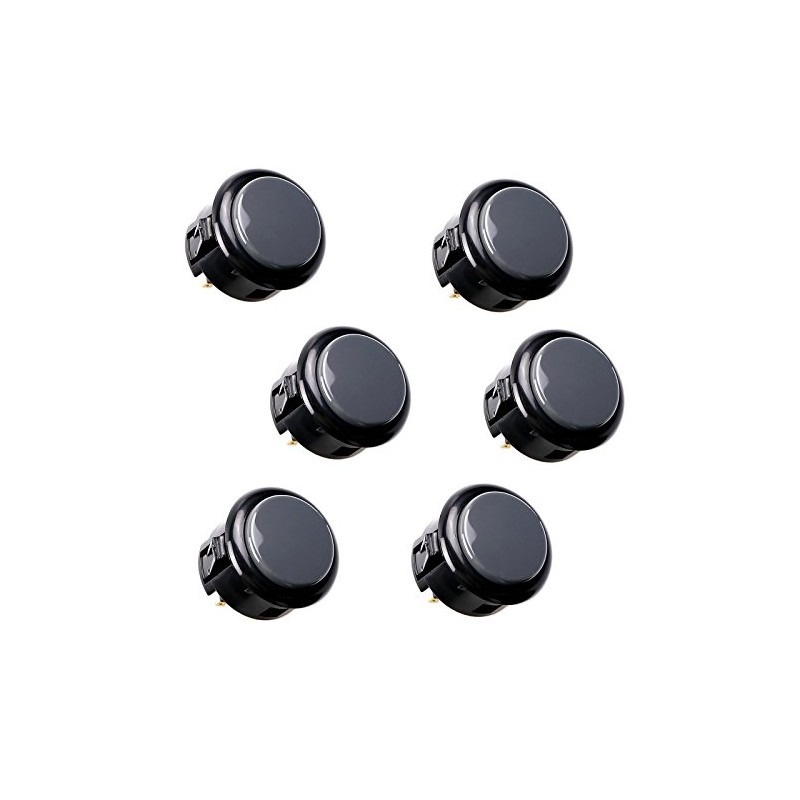 SANWA 6 pcs OBSF-30 Original Push Button 30mm - for Arcade Jamma Video Game & Arcade Joystick Games Console (Black & Gray) S@NWA