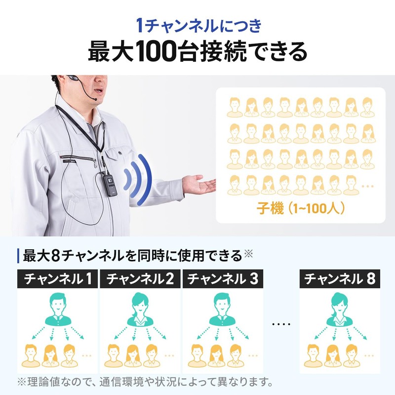 Sanwa Direct 400-HSGS004T Wireless Guide System, Earphone Microphone for Parent System, Tour Guide System, Unidirectional Communication, Connects up to 100 Units per Channel, Factory Tours, Travel