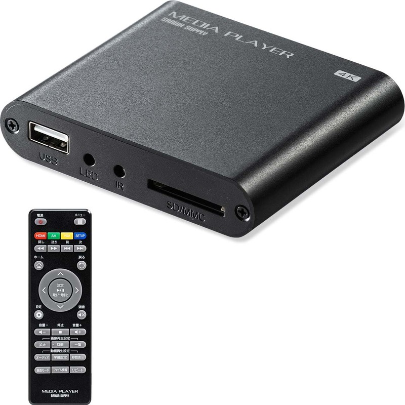Sanwa Direct 400-MEDI023 Media Player, 4K Compatible, USB Memory/SD Card Compatible, HDMI/RCA Output, MP4 Playback