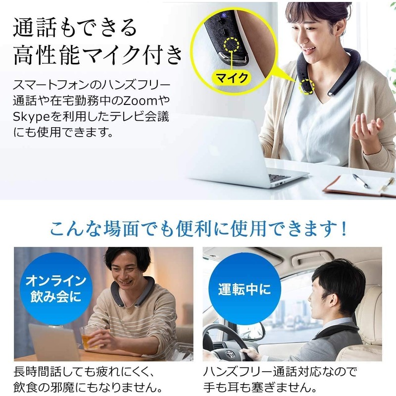 Sanwa Direct 400-SP090 Neck Speaker, Bluetooth Apt-X LL Compatible, Low Latency, For TVs, 11 Hours of Continuous Playback, Waterproof IPX5, Supports Calls, Zoom/Skype Compatible,