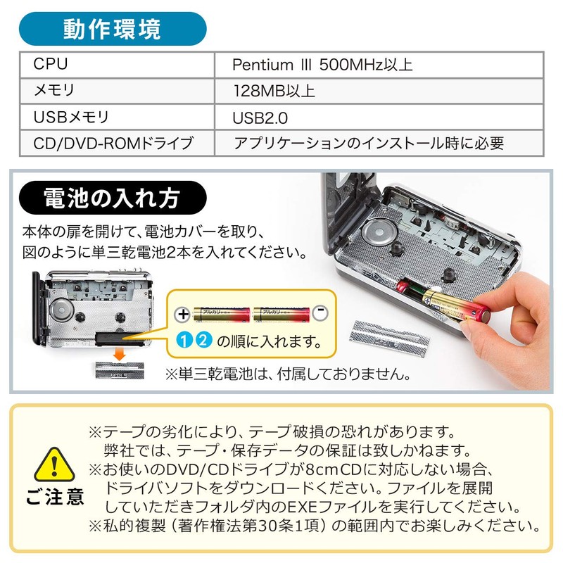 - A player that allows you to easily convert sound recorded on a cassette tape into MP3 data.