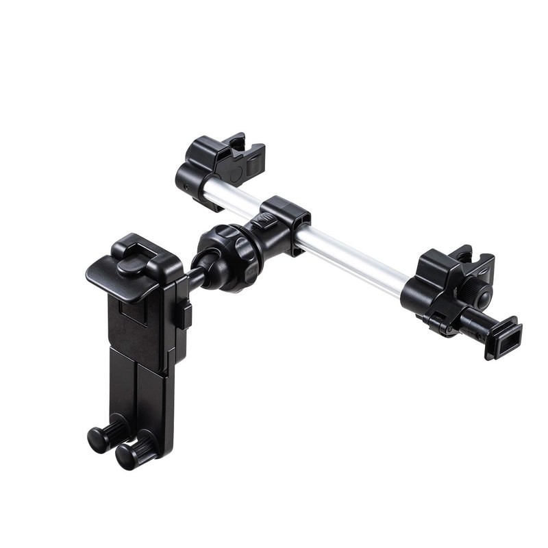 - Easy to install without any tools. Note: Please do not attach anything other than compatible devices. Depending on the shape of the headrest, the product may not be compatible. Please do not install in places that will interfere with the entry or exit. Excessive impact may impact the headrest To prevent this product from falling out, please make sure it is securely attached to the headrest every time. Depending on the reclining of the seat or the angle of the headrest pole, the smartphone or tablet may not be able to be fixed horizontally